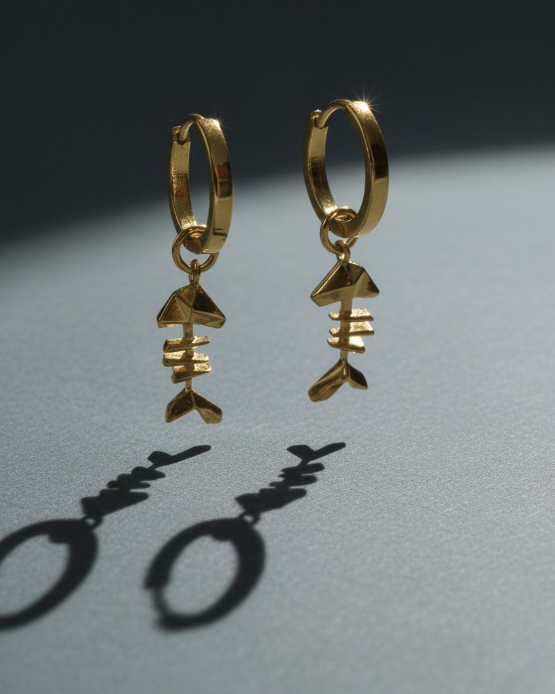 MARS Fish Bone Drop Stud Earrings, 18k Gold Vermeil