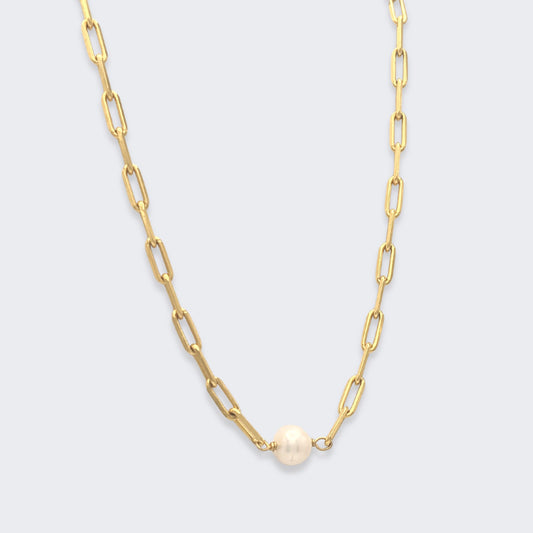 Em Mini Paper Clip Pearl Necklace, 18k Gold Vermeil
