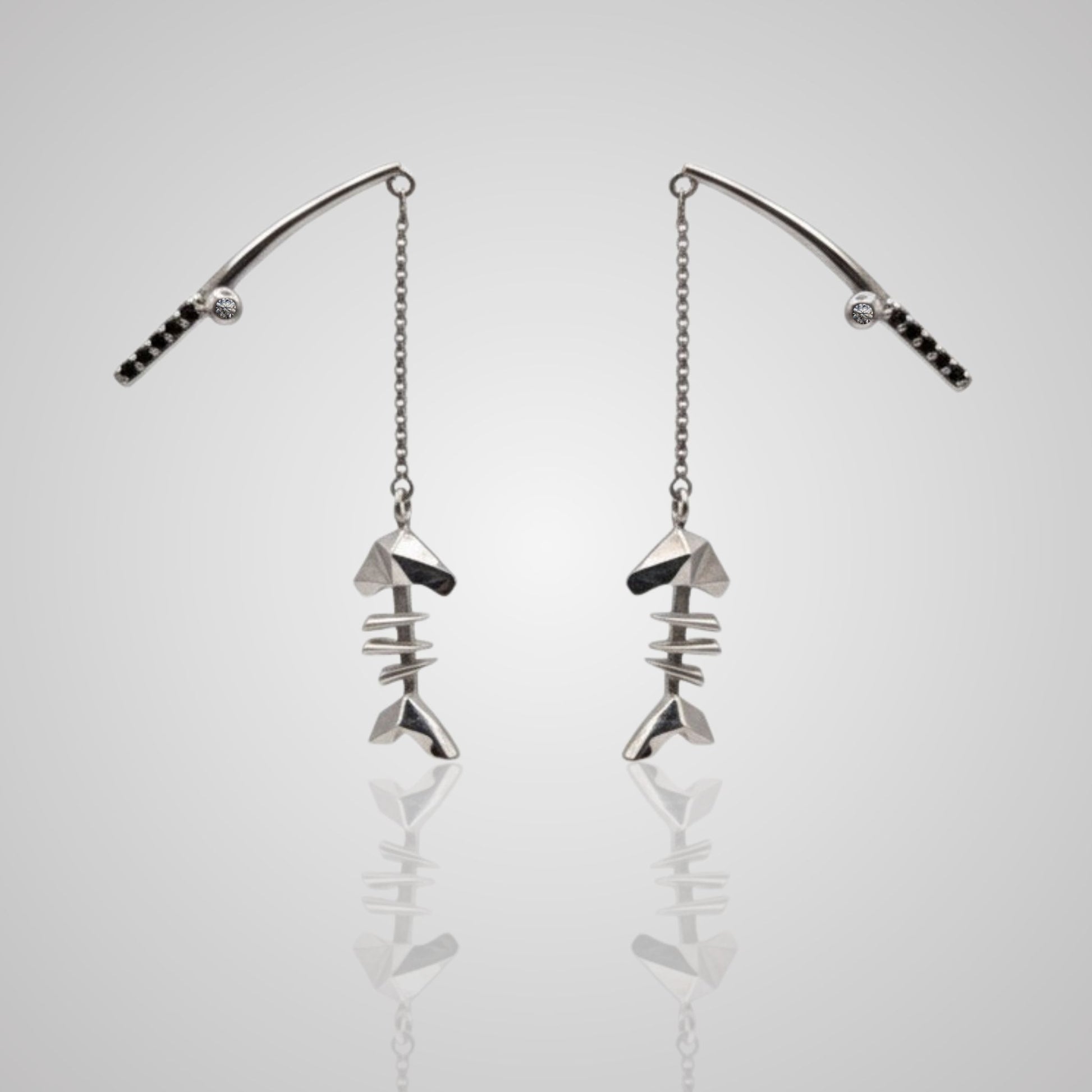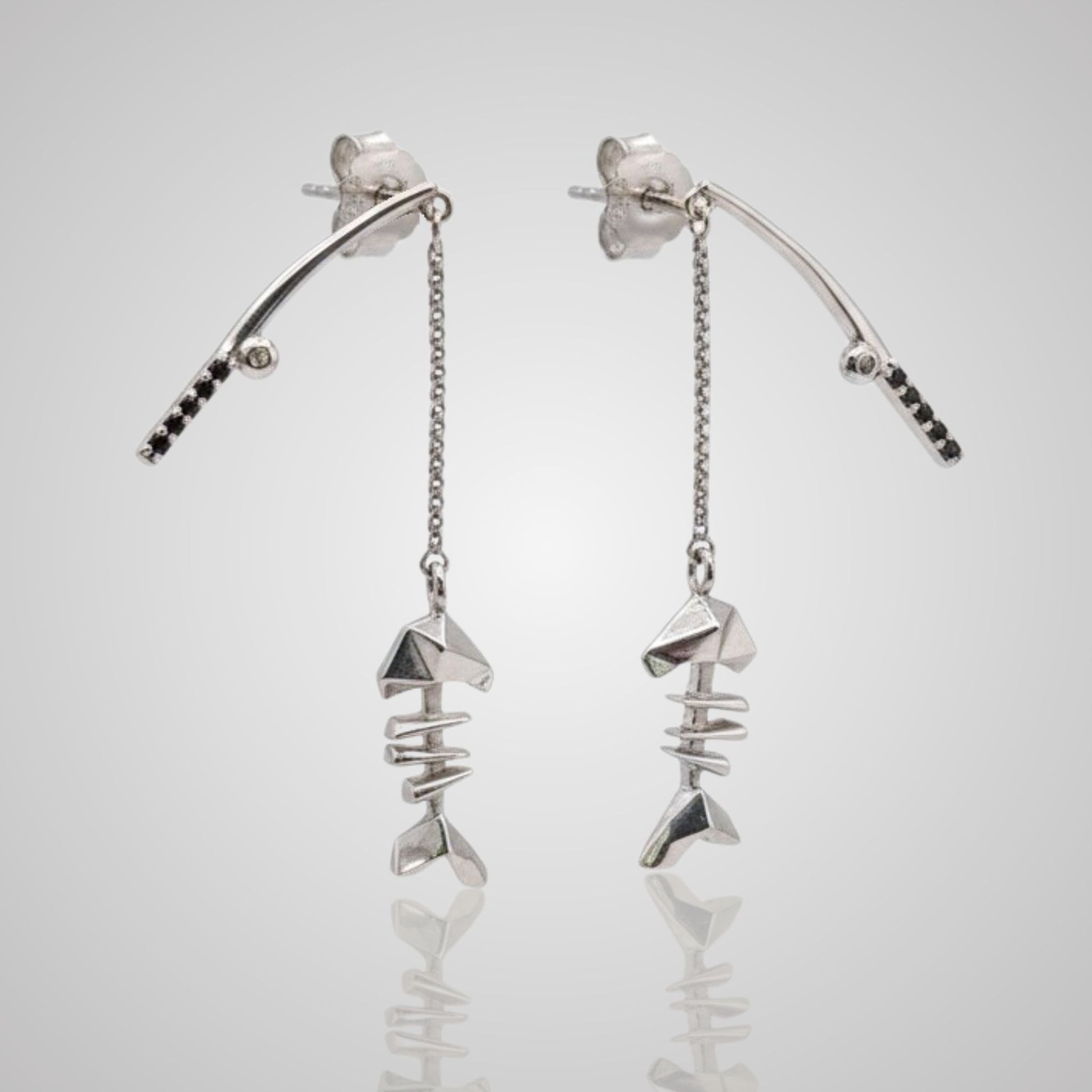 MARS Fishin’ Fish Bone Dangle Earrings, Sterling Silver